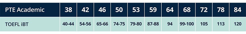 PTE Academic is scored against the Global Scale of English (GSE), which aligns with a variety of popular tests and scales around the world.